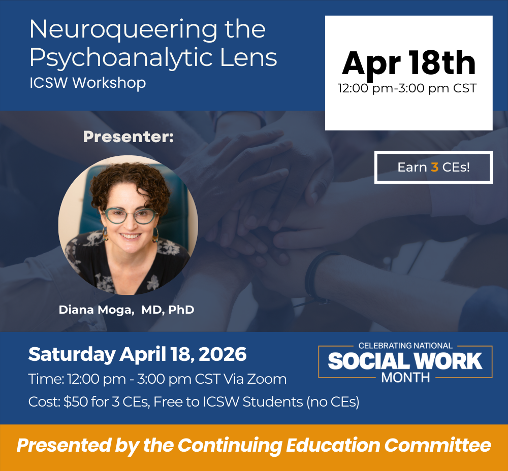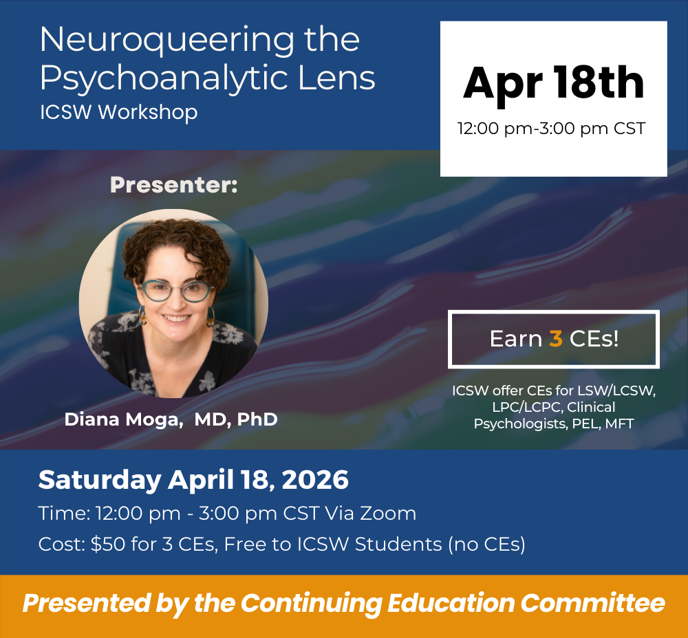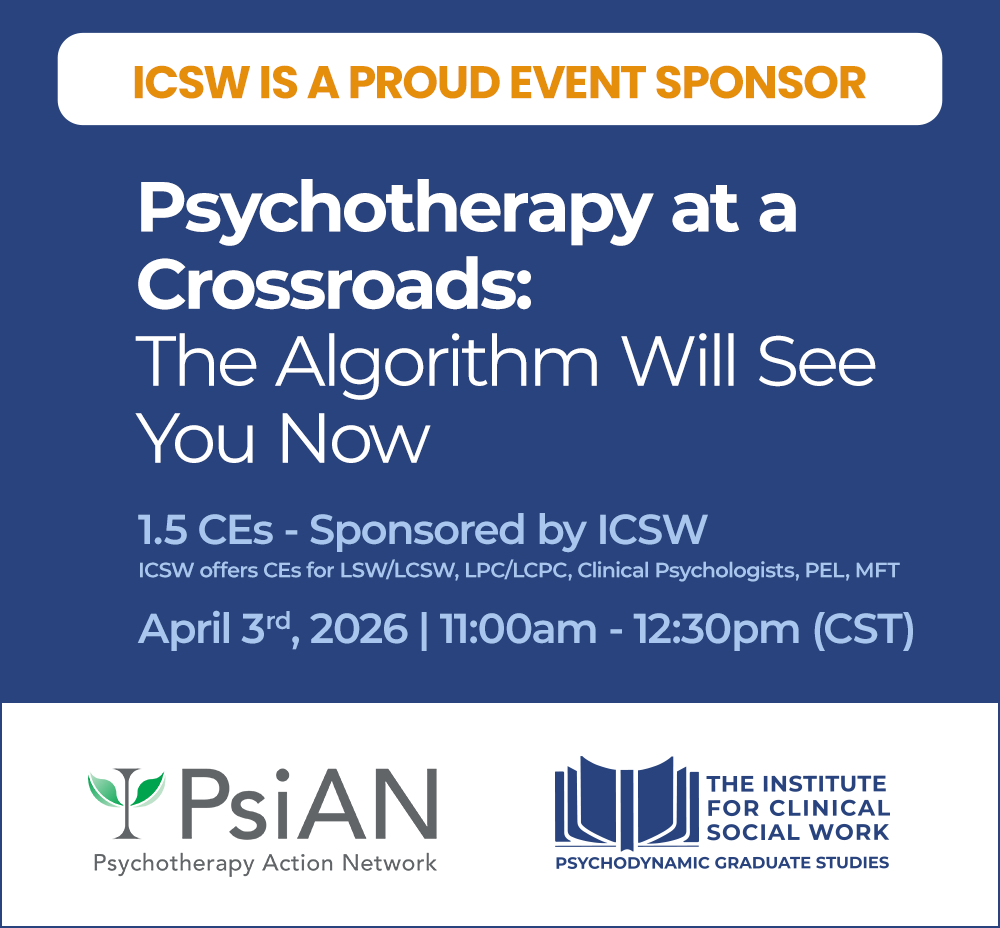 If you require CEUs, ICSW’s professional enrichment program is available to all practicing clinicians, regardless of experience level.