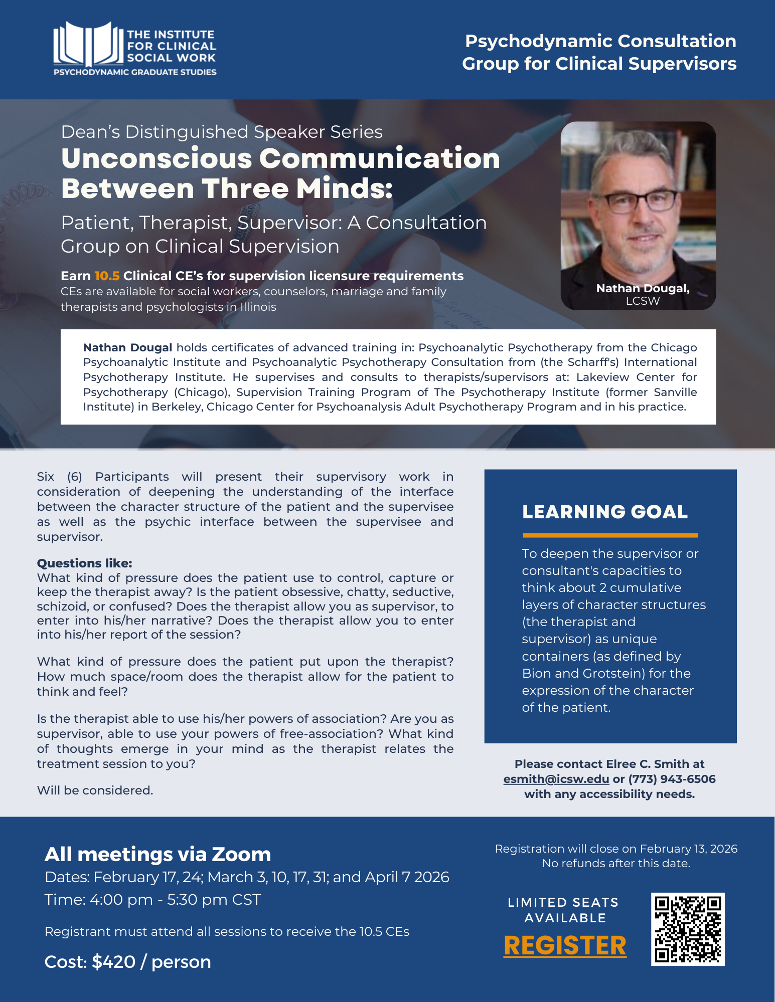 Unconscious Communication Between Three Minds Tuesday, February 17, 2026 4:00 PM 5:00 PM Google Calendar ICS Contact Elree C. Smith with questions: esmith@icsw.edu register